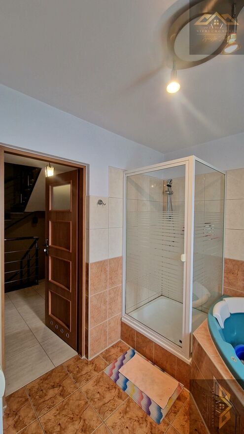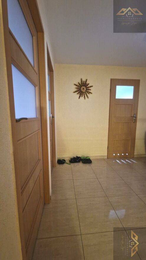 Dom posiada aż osiem przestronnych pokoi, idealnych zarówno dla dużej rodziny, jak i na cele inwestycyjne (np. pensjonat, biuro). Wnętrze uzupełnia łazienka z wanną, prysznicem oraz WC, dodatkowe oddzielne WC, a także duża, jasna kuchnia z miejscem na wspólne rodzinne posiłki. Wysoki standard wykończenia podkreślają marmurowe schody z balustradą ze stali nierdzewnej i elementami drewnianymi, a także kominek z systemem rozprowadzenia ciepła, który tworzy wyjątkowy klimat w chłodniejsze dni.